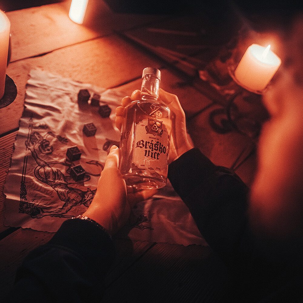 Léta Páně 1378 ožívá receptura dávných mistrů a přichází BRÁŠKOVICE IV – Královský gin destilovaný z bylin království českého. Vyladěn jak čepel mečíře a uložen v černé truhle se zlatým zdobením.
