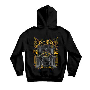 LIMITOVANÁ EDICE mikiny s kapucí, která má přes záda design inspirovaný Herdynovým oblíbeným rytířem, tentokrát v equipu z Elden Ringu. Za rytířem najdete Kolo Smrti vyvedené ve zlaté shimmer barvě.