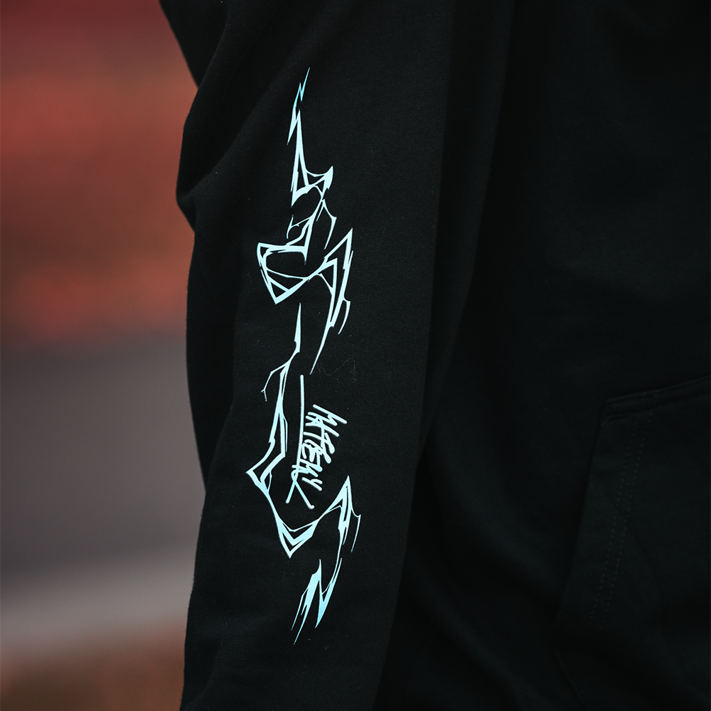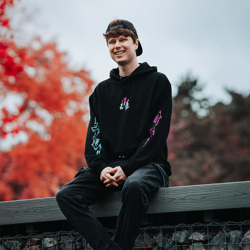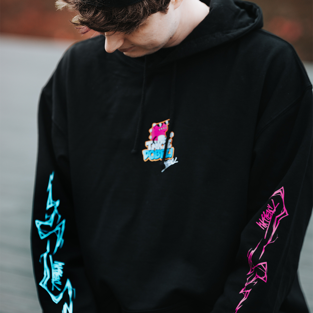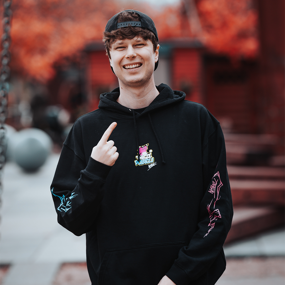 Černá oversized mikina s typickým Mattemovým Dinem a nápisem Takže dobrej ti dodá vibe, který nejde přehlédnout. Extra cool jsou růžovo-modré čáry na rukávech – totální pecka, co přitáhne pohledy. Tahle signature mikina je must-have pro každého, kdo chce být v teple a stylu zároveň.
