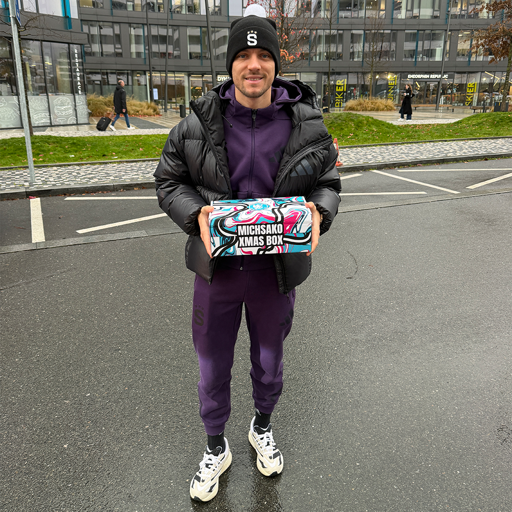 Box MichSako je ten nejlepší dárek pro každého fotbalového fanouška. Uvnitř najdeš ponožky, kulich, náramek, podepsanou fotku a hlavně jedinečnou trofej — symbol, že patříš do MichSako klubu. Ideální balík pro všechny, kteří žijí fotbalem.
