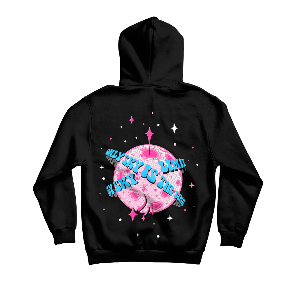 Mikina z limitované kolekce inspirované sny, odvahou a představivostí. Na první pohled jednoduché, ale s vesmírnou energií - nápis MOON na hrudi a růžový měsíc s mottem Only sky is the limit! na zádech. Modré detaily jsou vytištěny prémiovou technikou puff print, která dodává potisku jemný 3D efekt a originální vzhled.