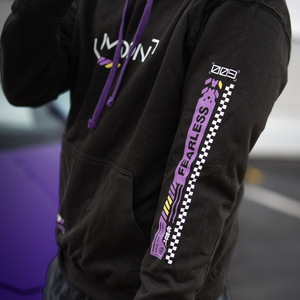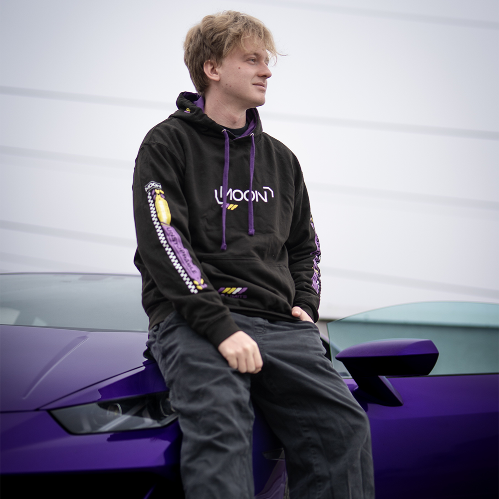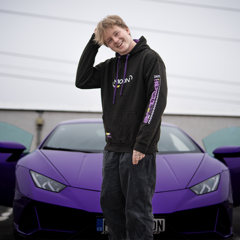 Pro obrovský zájem vracíme tuhle ikonickou mikinu v nové verzi, která pořád drží Moonův styl a závodní vibe. Černý základ doplňují fialové a žluté detaily inspirované jeho Lambem, moderní potisky na rukávech a výrazná grafika na zádech. Vepředu decentní MOON logo, na rukávu jasné UNSTOPPABLE - přesně ten mindset, který k Moonovi patří.
