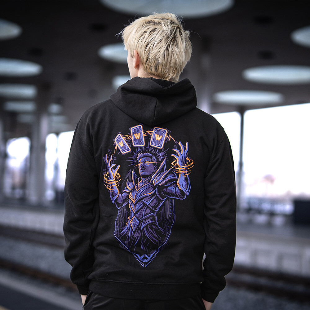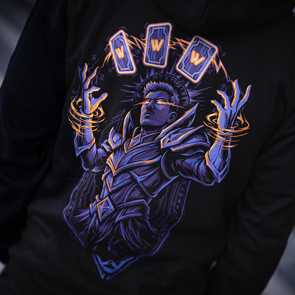 Fialovo-oranžová energie, symbol rovnováhy mezi světlem a stínem, ožívá v jedinečném designu inspirovaném Wedryho herním světem. Postava, která ovládá karty osudu, představuje spojení strategie, klidu a nebezpečné síly – jako by z obrazovky vystoupil sám mistr magie.